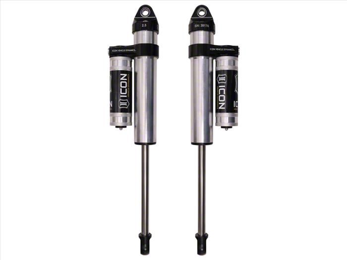 Tailored Experience. ICON's engineers have meticulously tuned the valving to provide a perfect balance of ride quality, handling, and off-road capability. The ICON Vehicle Dynamics V.S. 2.5 Series Rear Piggyback Shocks are specifically designed to work with lifts of up to 1.50 inches, ensuring optimal performance and preventing bottoming out.