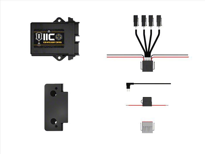 ICON Intelligent Control. For use with CDEV front coilovers and CDEV rear shocks the ICON Intelligent Control (IIC) is the computer that monitors, analyzes, and processes data in real-time. Information from the onboard G-force sensor and Gyroscope perform calculations based on algorithms and user-defined settings to predict terrain and wheel position. IIC has the capability to collect information at over 1000 times per second, process the data and make adjustments, then deliver those changes to Compression Damping Electronic Valve (CDEV) in the shock absorbers in under 40 milliseconds. IIC also works as a data driver to connect the user to ICON’s proprietary mobile App interface for monitoring and adjusting shock settings. The IIC is mounted to the 2022-2026 Toyota Tundra using application specific mounting brackets, hardware and wire harnesses, ensuring an easy and clean looking install.