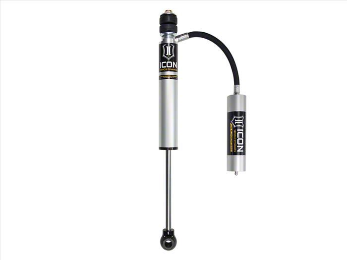 Confidently Tackle Any Terrain. The ICON Vehicle Dynamics V.S. 2.0 Rear Remote Reservoir Shock boasts superior damping characteristics compared to factory shocks. This translates to a smoother ride on rough roads and improved handling when navigating uneven terrain. The larger shock body and remote reservoir allow for increased oil capacity, which helps to dissipate heat more effectively, reducing fade and maintaining consistent performance during extended off-road adventures.