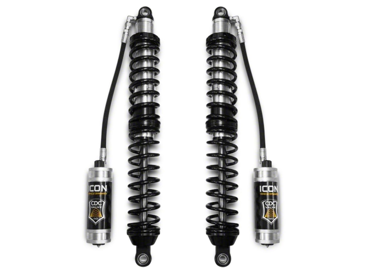 Aircraft Grade Aluminum. Designed with 6061 CNC-machined aircraft grade aluminum components, ICON Vehicle Dynamics' V.S. 2.0 Series Rear Remote Reservoir Coil-Overs with CDCV for 3-5 in. Lift are extremely durable. They feature a one-piece digressive piston and a nitrogen-charged monotube for high-end performance. Made in America and 100% rebuildable and revalvable, these coil-overs will keep you happy for a long time to come.