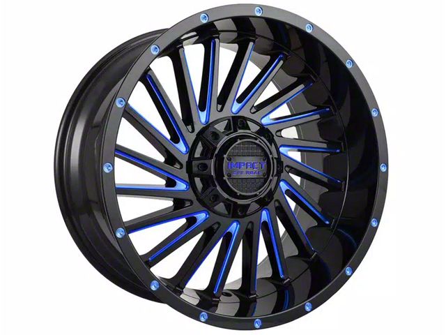 Impact Wheels 812 Gloss Black and Blue Milled 6-Lug Wheel; 20x10; -12mm Offset - Elevate your vehicle's style with this wheel's striking design. Reflecting the Impact Wheels' commitment to quality, it promises to add a touch of elegance and a strong character to your ride. Perfect for those seeking to make an impression without saying a word.