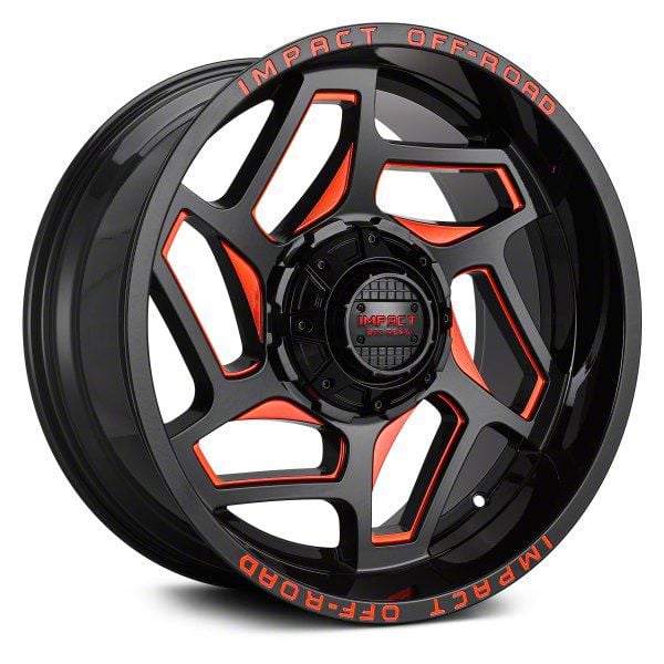 Impact Wheels 826 Gloss Black and Red Milled 6-Lug Wheel; 20x10; -12mm Offset. Enhance your vehicle's look with the Impact Wheels 826 Gloss Black and Red Milled 6-Lug Wheel. This premium wheel adds a touch of elegance and class to your vehicle, complementing its sophisticated aesthetic.