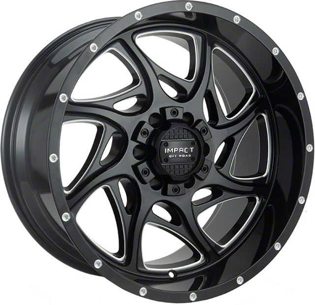 Impact Wheels 832 Gloss Black Milled 6-Lug Wheel; 20x10; -12mm Offset. The Impact Wheels 832 Gloss Black Milled 6-Lug Wheel offers a striking balance of style and refinement. Its unique design accentuates the vehicle's aesthetic, while the premium construction underscores its robust nature. This wheel is a perfect choice for those seeking both elegance and a strong visual statement.
