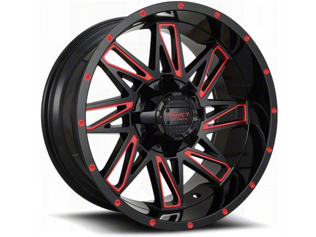 Impact Wheels 814 Gloss Black and Red Milled 6-Lug Wheel; 18x9; 0mm Offset exudes an unparalleled aesthetic appeal that perfectly complements a range of vehicle styles. The unique design crafted by Impact Wheels not only accentuates the visual appeal but also seamlessly aligns with contemporary vehicle aesthetics.