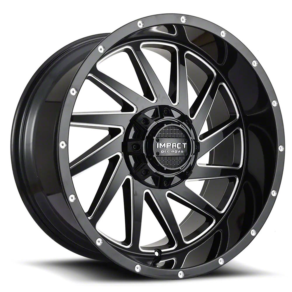 This 20x10 Impact Wheels 811 Gloss Black Milled 6-Lug Wheel; 20x10; -12mm Offset is completed in a high-quality gloss black finish with steel milled accents that will be the envy of everyone. For added protection and looks, there is a clear coat designed to handle whatever the road, or beyond, throws at it.
