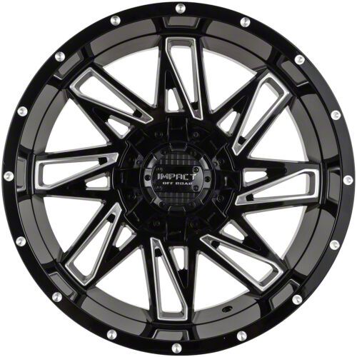This 20x10 Impact Wheels 814 Gloss Black Milled 6-Lug Wheel; 20x10; -12mm Offset is completed in a high-quality gloss black finish with steel milled accents that will be the envy of everyone. For added protection and looks, there is a clear coat designed to handle whatever the road, or beyond, throws at it.