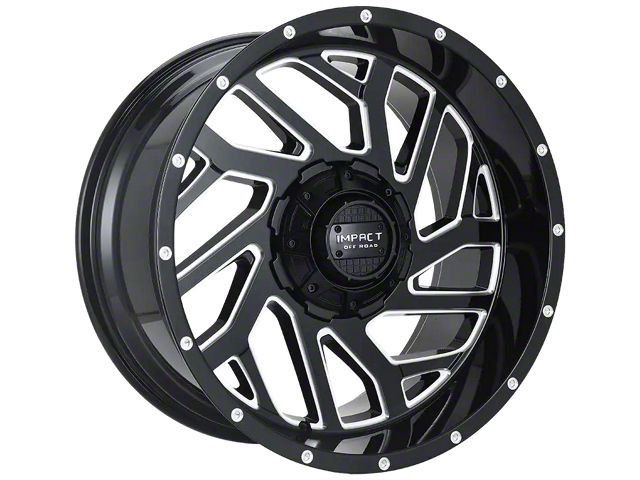 This 20x10 Impact Wheels 823 Gloss Black Milled 6-Lug Wheel; 20x10; -12mm Offset is completed in a high-quality gloss black finish with steel milled accents that will be the envy of everyone. For added protection and looks, there is a clear coat designed to handle whatever the road, or beyond, throws at it.
