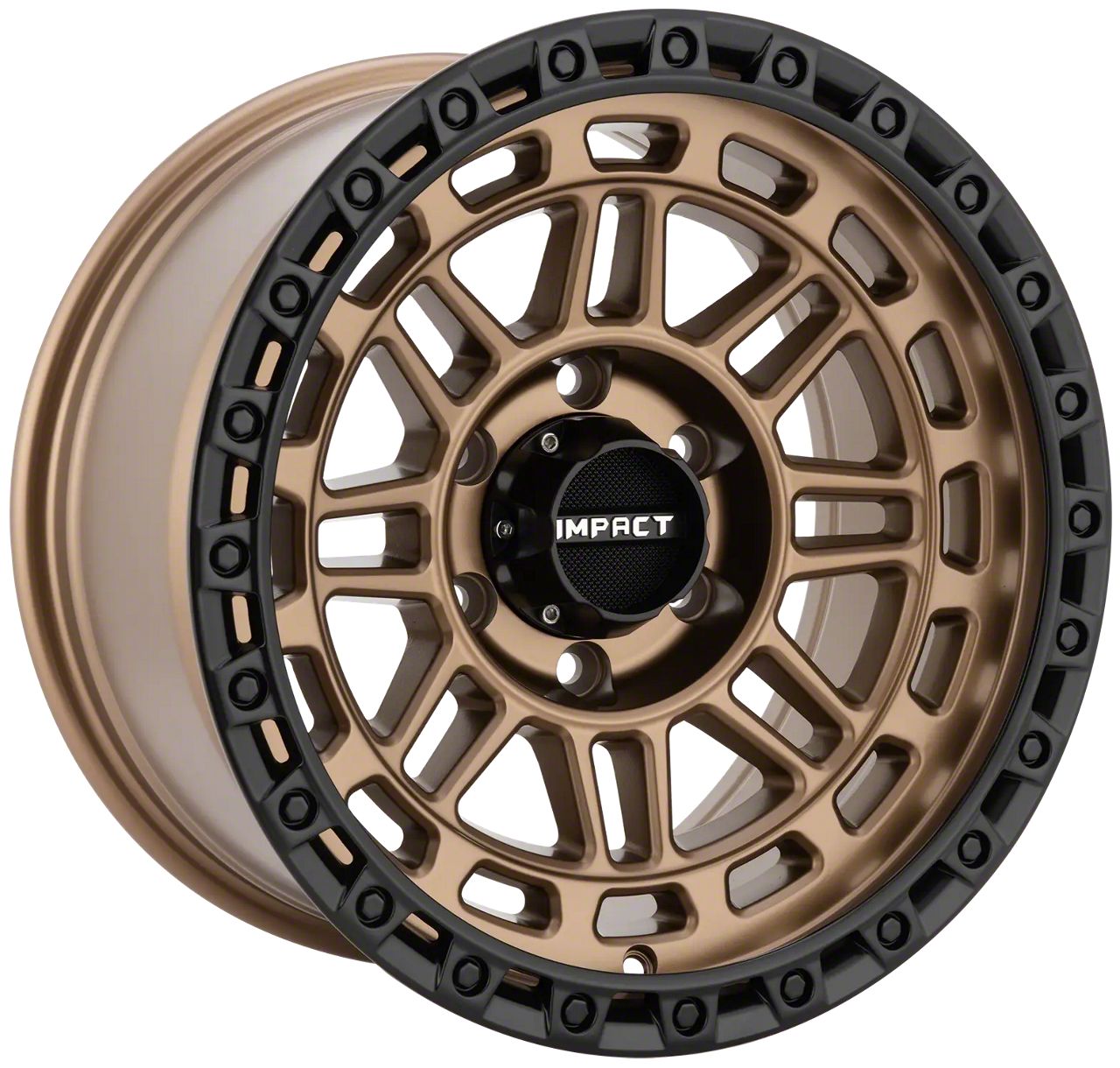 Impact Wheels 8806 Bronze with Black Bead Wheel; 17x9; -12mm OffsetThis wheel features a sleek and durable design, ideal for enhancing the aesthetic and style of your vehicle. Its quality craftsmanship ensures a perfect combination of form and function, suitable for any driver seeking a balance of style and dependability. Its high-quality finish ensures resistance against corrosion and wear over time. Designed for optimal visual appeal, this wheel complements a variety of vehicle styles.