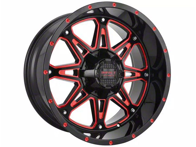 Impact Wheels 810 Gloss Black and Red Milled 6-Lug Wheel; 20x10 exudes an aesthetic allure that complements a range of vehicle styles. With its design rooted in Impact Wheels craftsmanship, this wheel accentuates your vehicle's elegant stance.