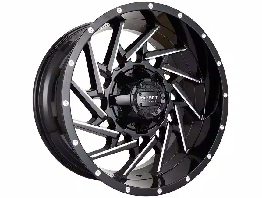 This 20x10 Impact Wheels 816 Gloss Black Milled 6-Lug Wheel is completed in a high-quality gloss black finish with steel milled accents that will create a striking appearance. There's a durable clear coat that protects against driving hazards.