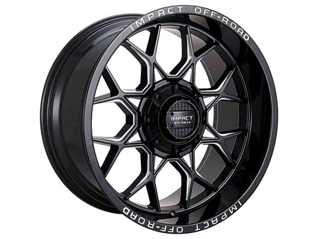 Impact Wheels 828 Gloss Black Milled 6-Lug Wheel; 20x10; -12mm Offset exudes sophistication with its finish, offering a sleek and modern appeal to any vehicle it adorns. The design is meticulously crafted to enhance the aesthetic of your vehicle, giving it a distinctive and upscale look. Perfect for those seeking to elevate their vehicle's style, this wheel blends seamlessly with both contemporary and classic vehicle designs, making it a versatile choice for a wide range of vehicles. Its robust construction ensures durability, making it a reliable choice for drivers who value both style and quality.