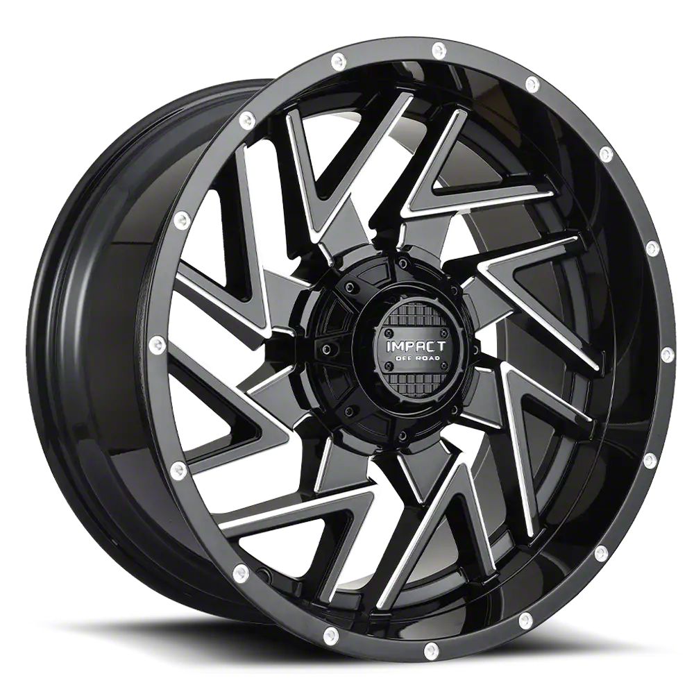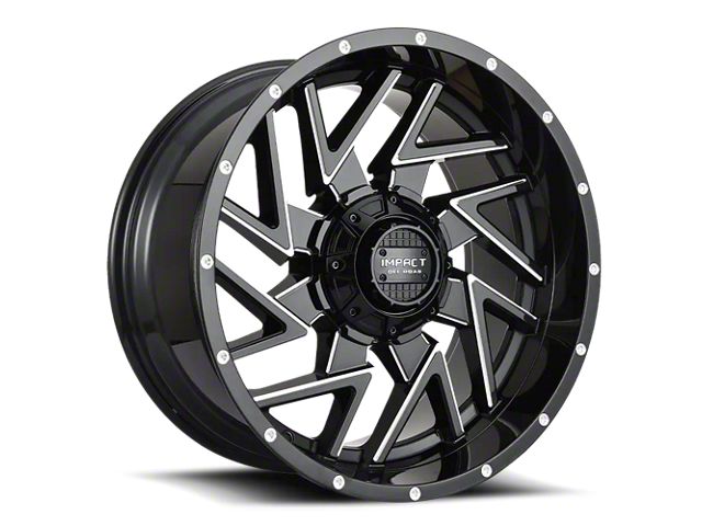 The 20x10 Impact Wheels 809 Gloss Black Milled 6-Lug Wheel is completed in a high-quality gloss black finish, with steel milled accents. Thanks to a durable clear coat, the finish looks amazing and also protects against the rigors of driving.