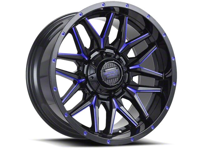 Impact Wheels 819 Gloss Black and Blue Milled 6-Lug Wheel; 18x9 exudes an aesthetic allure that complements a range of vehicle styles. With its design rooted in Impact Wheels craftsmanship, this wheel accentuates your vehicle's elegant stance.