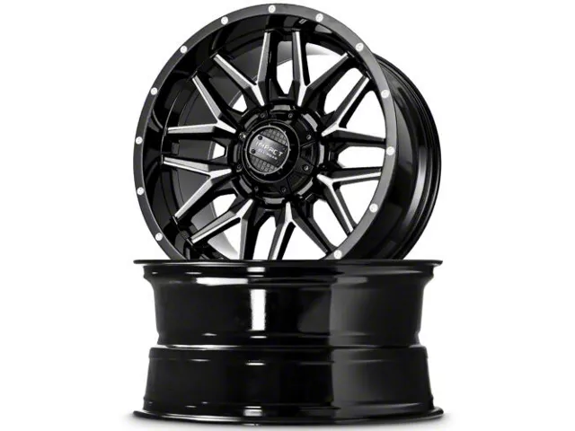 The 20x10 Impact Wheels 819 Gloss Black Milled 6-Lug Wheel; 20x10; -12mm Offset is given a gloss black finish to keep your wheel looking as sharp as its design. This wheel’s milled steel accents are where it really shines through, and quite literally. It makes the split section of the spokes pop and adds great accents along the faux beadlock.