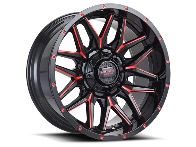 Impact Wheels 819 Gloss Black and Red Milled 6-Lug Wheel; 18x9 exudes an aesthetic allure that complements a range of vehicle styles. With its design rooted in Impact Wheels craftsmanship, this wheel accentuates your vehicle's elegant stance.