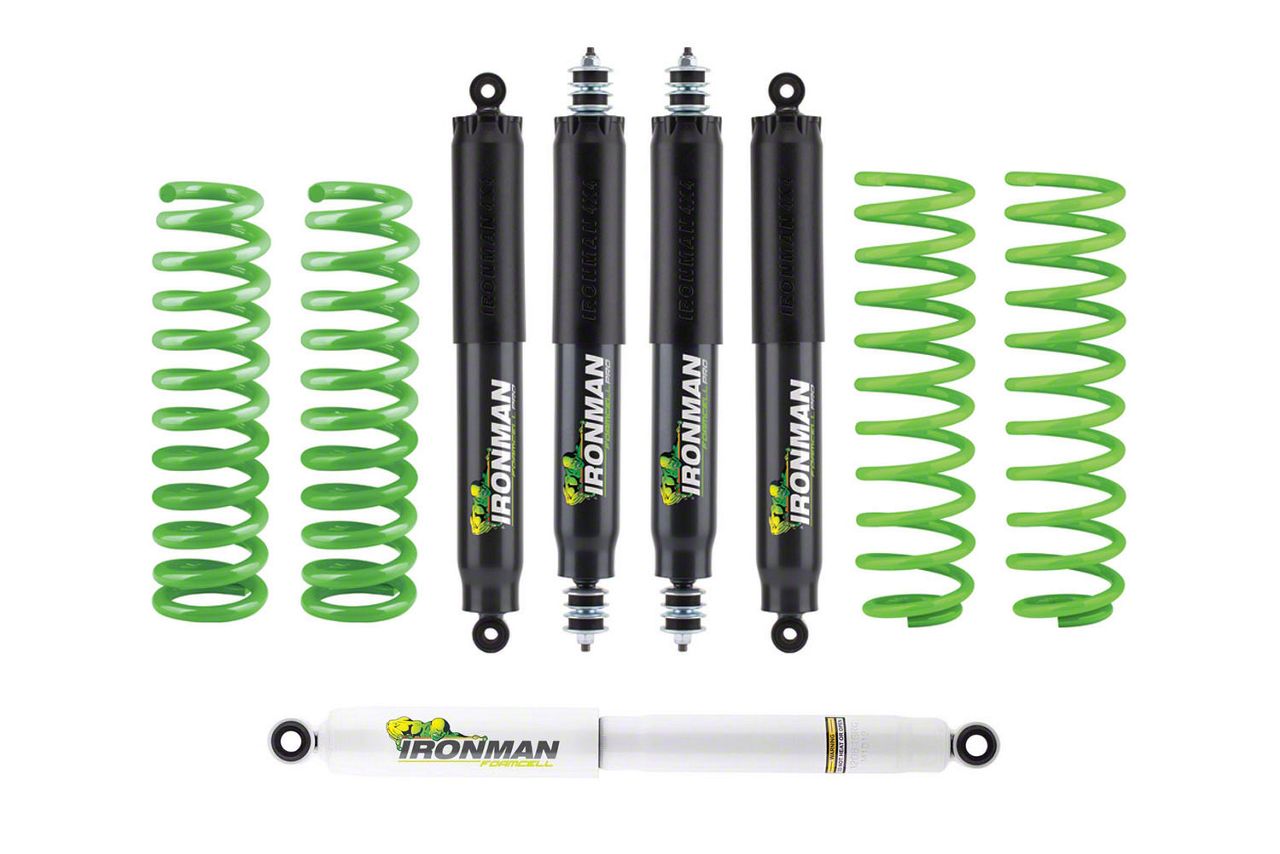 Top-Notch Functionality. If you're looking for a lift kit that can take on anything, look no further than the Ironman 4x4 2-Inch Foam Cell Pro Medium Load Suspension Lift Kit. This kit is designed to deliver reliable handling both on and off road, while also lessening the heat buildup. On top of that, it's threaded height adjustable so you can fine tune your ride however you like. The shocks are also included, so you can hit the trails with confidence knowing your vehicle is ready for anything.