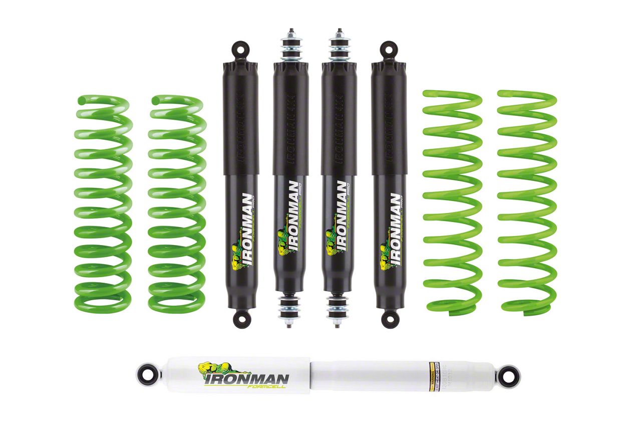 Quality Support. Rock a stronger stance for your Jeep Wrangler and take on the trail with better dampening and control with this Ironman 4x4 2-Inch Foam Cell Pro Medium Load Suspension Lift Kit with Shocks. Designed to improve your terrain drive, it features a twin-tube design with built in bump stops and a stable solid base for maximum balance and responsiveness on the road.