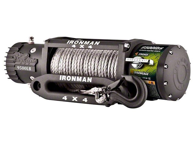 Medium-Duty Design. If you are looking for a compact tool to help in your recovery operations than This Ironman 4x4 9,500 lb. 12v Electric Monster Winch with Synthetic Rope. It features a strong motor and unique synthetic rope that can handle up to 9,500 pounds, plus its Bluetooth controller makes operation a breeze, giving you full control even from inside your vehicle. The included flashlight also helps with night recoveries and jobs in poorly lit areas.