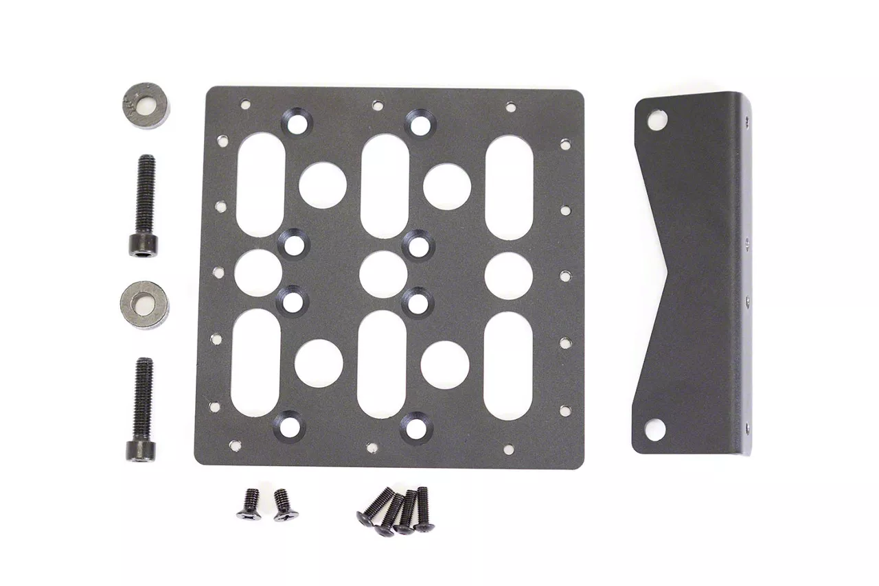 Construction And Appearance. Constructed from heavy‑duty steel with a durable powder‑coat finish, the bracket resists corrosion and stands up to harsh off‑road environments. The mounting plate spacer and bolts are precision‑machined for secure fitment and a clean, professional look.