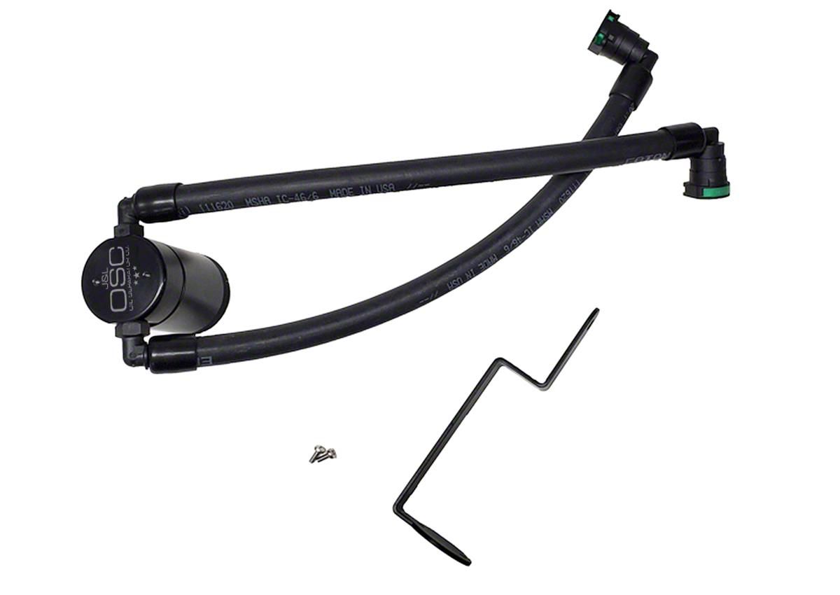 During the process of venting crankcase pressure back through your intake track, large amounts of oil, in the form of vapors can gather/accumulate in your intake tube, intake manifold runners and even dilute your gas, lowering its octane level. This happens on all engines and is even worse with forced inducted vehicles (supercharged and turbocharged) as crankcase pressures are increased. To combat this, we have developed an oil separator of our own design. Milled from solid billet aluminum this is a rock-solid piece. It has a knurled tank base for easy removal to drain the spent oil and an O-ring seal to prevent any leaks.