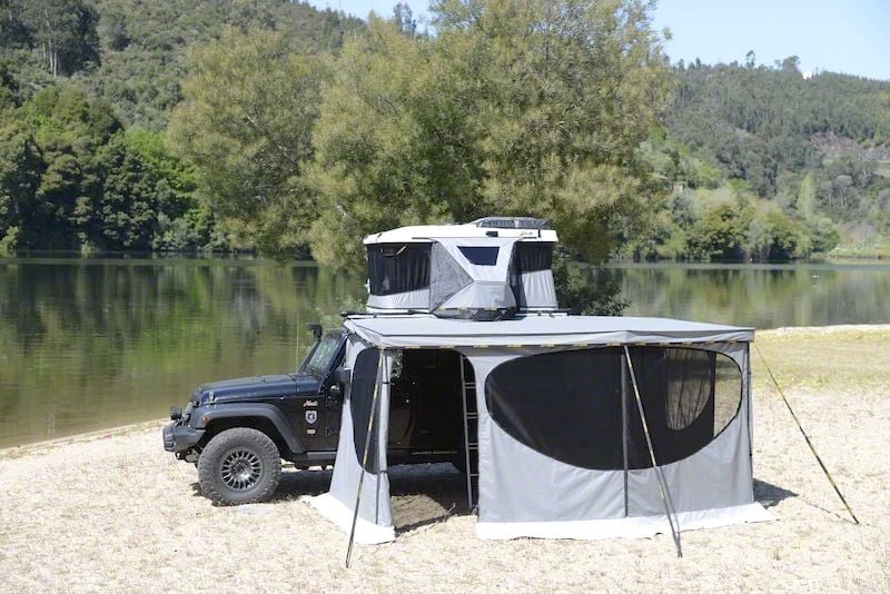 Comfort and Convenience. Make the most of your James Baroud awning by adding the JAMES BAROUD Walls for Falcon Awning (Left Side). These high-quality walls provide additional shelter and privacy while you enjoy the great outdoors. The Left Side Walls features a simple and easy-to-use design that allows you to attach them quickly and easily to your Falcon Awning. Once attached, the walls create a fully enclosed space, providing you with a private and sheltered area to relax, cook, and enjoy the outdoors in comfort.