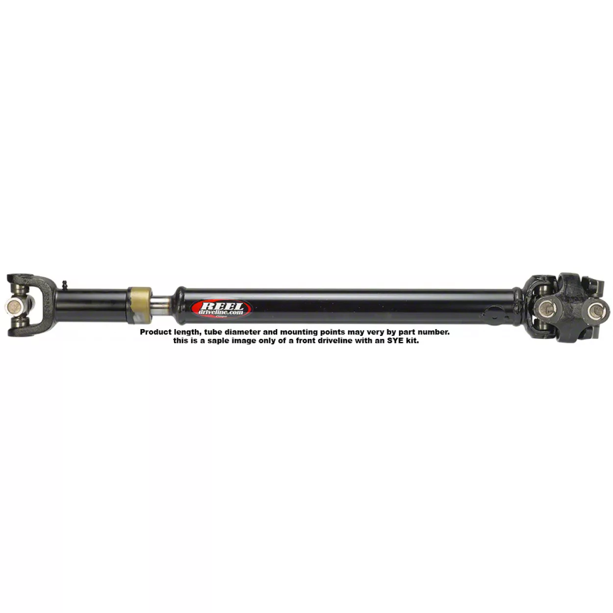 Enhanced Durability. The J.E. Reel Heavy Duty 1310 Front Driveshaft is crafted to surpass the original equipment driveshaft in strength and flexibility. This front driveshaft is engineered specifically to handle stock heights and up to 4.50 inches of additional suspension travel, supporting a maximum tire size of 33 inches. Ideal for enhancing the off-road capabilities of your Jeep.