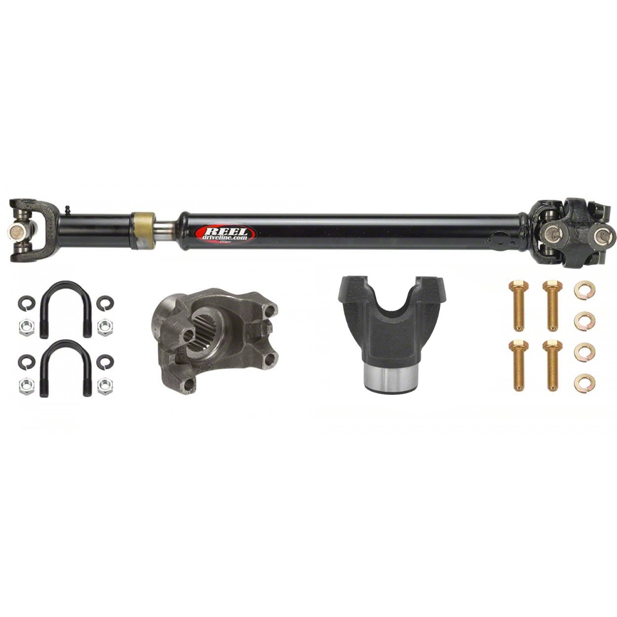 Enhanced Performance. The J.E. Reel Heavy Duty 1310 Front Driveshaft is specifically designed to enhance durability and performance. Featuring integrated 1310 U-joints and a cast U-bolt style yoke design, this driveshaft provides superior strength and reliability for off-road adventures and daily driving alike. The T/C yoke feature ensures a seamless connection to the transfer case, further enhancing the drivetrain's efficiency.