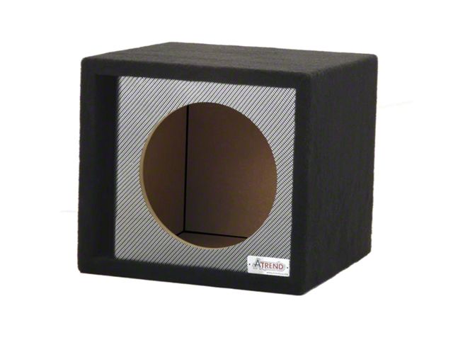 Description. 10" Single Vented Subwoofer Enclosure. Carbon Fiber Painted Finish. Ultra plush black carpeting. Silver spring loaded terminal cups. 3/4" MDF construction. Completely Miter and Dado panel. Total box volume: 1.75 cubic feet. Dimensions: 14"D x 16"W x 18-1/4"H.