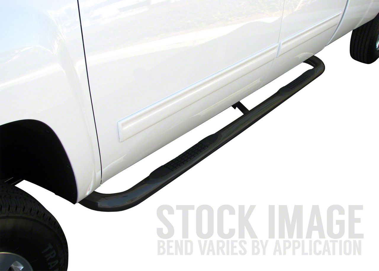 Robust Construction. Made from 3-inch round steel material and protected by an E-coated layer, these side step bars are designed to resist corrosion and rust, ensuring long-lasting durability and maintaining their sleek black appearance under various weather conditions. What's more? The UV-treated non-slip step pads enhance safety by preventing slips during wet conditions.