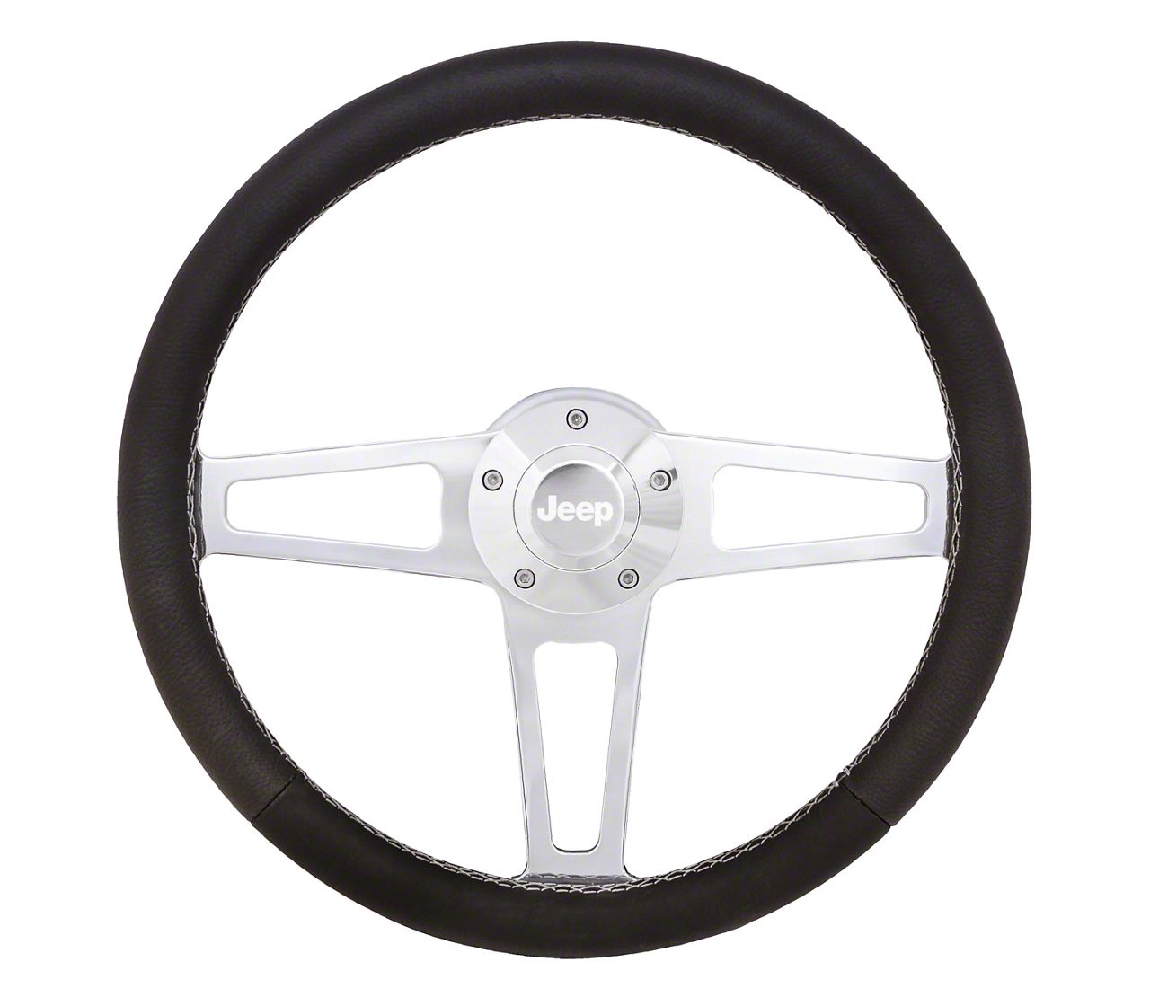 Billet T-Series Steering Wheel with Jeep Logo; 14-Inch; Black and Polished (84-94 Jeep Cherokee XJ)Find parts that fit my vehicle