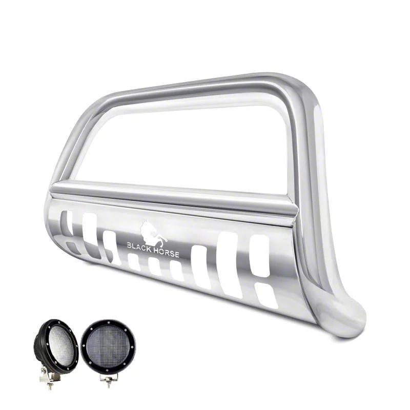 Bull Bar with 5.30-Inch Black Round Flood LED Lights; Stainless Steel (14-23 Jeep Cherokee KL, Excluding Trailhawk)Find parts that fit my vehicle