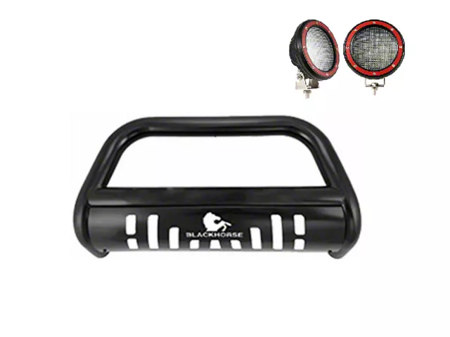 Added Visibility. The highlight of this bull bar is the integrated 5.30-inch red round flood LED lights. These powerful lights illuminate your path with a bright, wide-angle beam, significantly improving visibility during night drives or in adverse weather conditions.