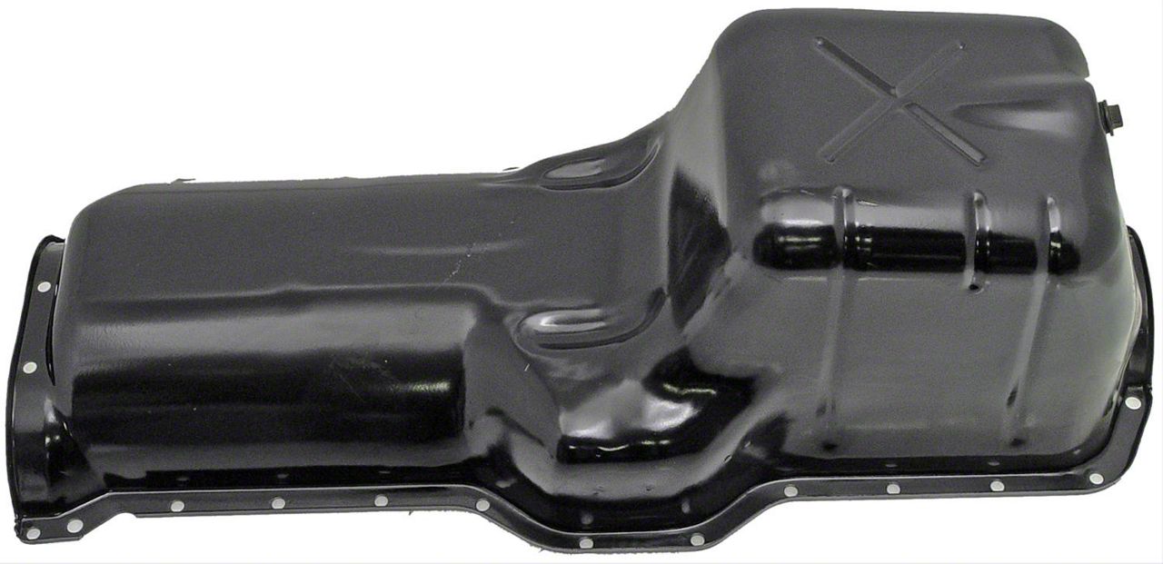 Durable Construction. This engine oil pan is manufactured from premium stamped steel for exceptional durability and ductility, withstanding moderate impacts, excessive heat, oil contamination, and road/engine vibrations with ease.