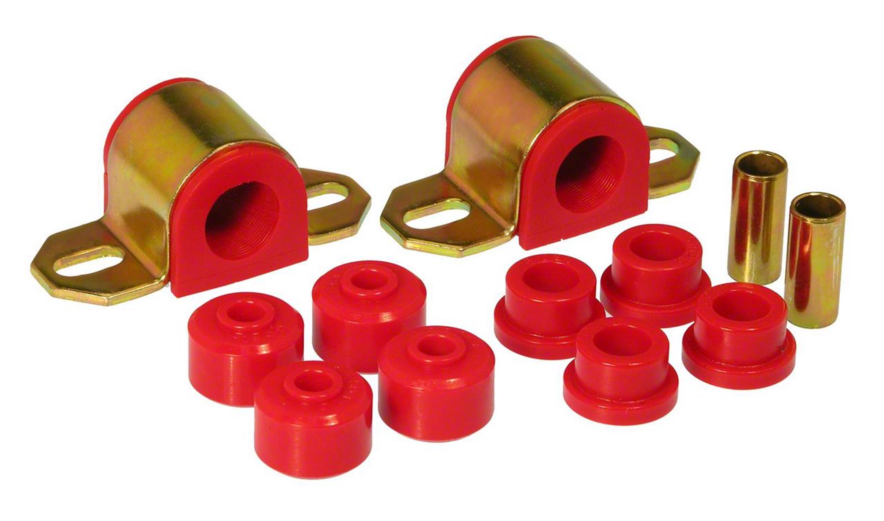 Construction and Appearance. Manufactured from high-quality polyurethane, this bushing kit provides superior durability and longevity compared to factory rubber components. Available in your choice of red or black, the bushings resist oil, road grime, and extreme temperatures while delivering a tight, responsive feel in the steering and suspension.