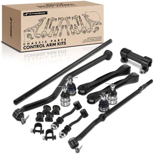 Built Tough, Engineered to Last. Each component in this Front Upper Control Arm, Ball Joint, Sway Bar Link and Tie Rod End Kit is constructed from heavy-duty materials to withstand the rigors of daily driving and off-road adventures. The front upper control arms come with pre-installed ball joints, reducing installation time and ensuring a secure fit. The sway bar links and tie rod ends are engineered for durability and precise fitment, contributing to improved vehicle stability and steering response.