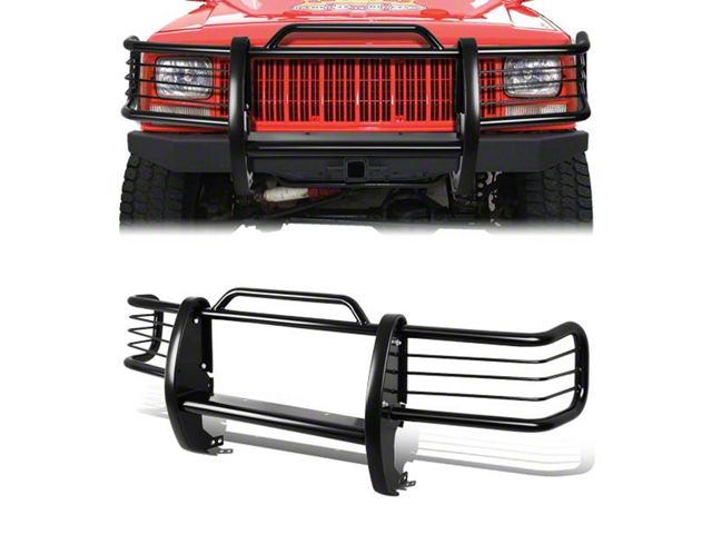 Rugged Protection. The Grille Guard is engineered to safeguard the front end of your Jeep Cherokee XJ. This essential accessory is ideal for off-road and on-road adventures, protecting the vehicle's front from impacts and debris.