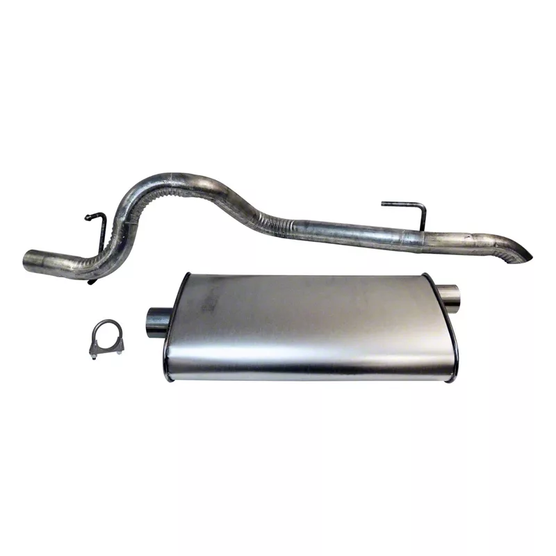 Performance. This Muffler and Tailpipe Kit is made to significantly dampen the exhaust noise, providing a quieter and more pleasant driving experience. The muffler utilizes advanced noise-canceling technology to effectively reduce both the drone and the harshness of the exhaust tone, ensuring a smoother and quieter sound profile without hindering the vehicle's performance. This feature is especially beneficial for enhancing the comfort of both the driver and passengers during long drives, making it easier to enjoy conversations and music without excessive background noise.