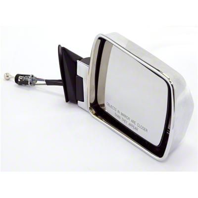 Stylish and Functional Door Mirror Replacement. This Door Mirror is an excellent upgrade for the passenger side of your 1984-1996 Jeep Cherokee XJ. Featuring a polished chrome finish, it enhances the vehicle's appearance while offering reliable functionality.