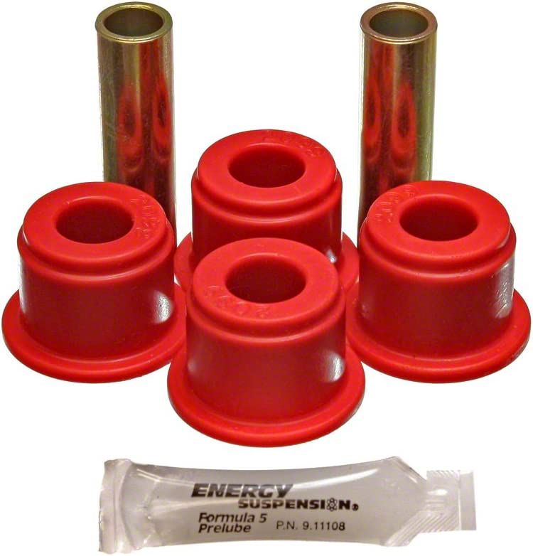 Enhanced Durability and Performance. The Rear Leaf Spring Shackle Bushings are designed to provide a significant upgrade for your Jeep. Crafted with HYPER-Flex polyurethane material, these bushings offer superior durability and resistance to wear compared to standard rubber bushings. The red finish not only adds a distinct look to the vehicle's undercarriage but also signifies the high-quality and performance-oriented nature of the component.