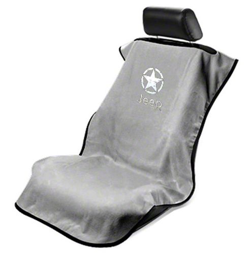 Easy Install and Quick Removal. Featuring a straightforward installation, this Seat Cover with Jeep Star easily slides down over the headrest. It lays on your seat like a towel and does not need any tools for installation.