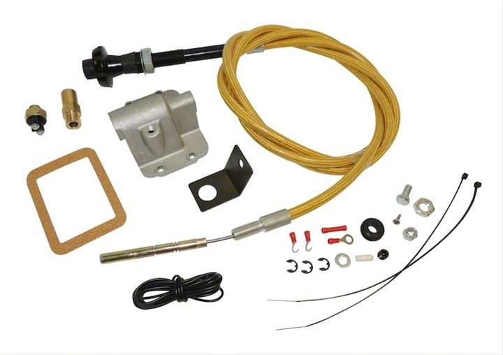 Construction and Appearance. Constructed with a zinc-coated braided stainless steel cable and premium-grade aluminum housing, this kit offers superior durability and longevity. The components are designed to integrate seamlessly with factory parts, ensuring a perfect fit and reliable operation.