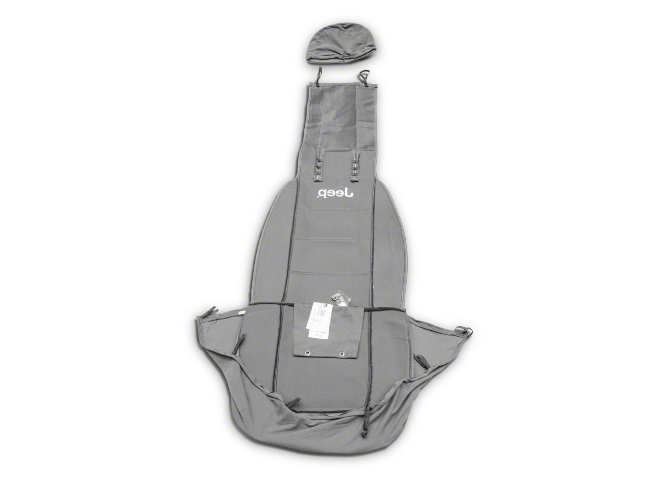 Official Jeep Style. Protect and enhance your Jeep's interior with this Jeep Logo Side Less Seat Cover in gray vinyl. Officially-licensed with the Jeep logo in the mid shoulder blade range, you get a sturdy, style upgrade.