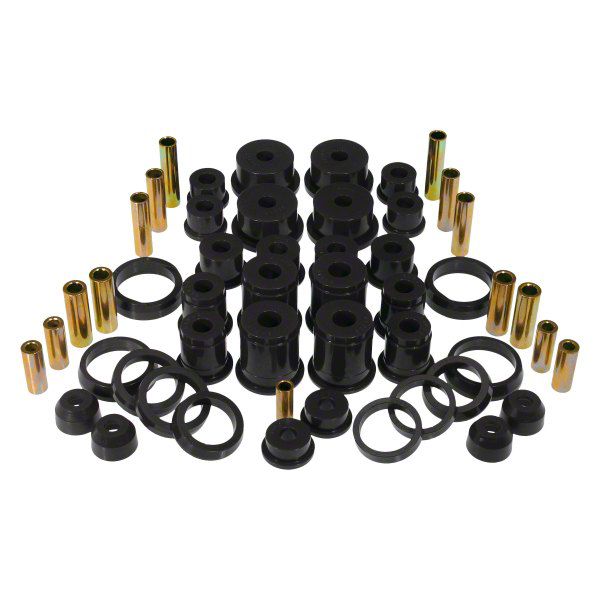 Long Lasting Quality. The Total Bushing Kit is a premium automotive accessory meticulously designed to enhance your vehicle's performance and longevity. Crafted with high-quality polyurethane material, these bushings are engineered to provide superior durability and resilience. The sleek black design not only adds a touch of style but also signifies their robustness. Whether you're pushing your vehicle to extreme speeds or navigating challenging driving conditions, these bushings are built to withstand it all, ensuring optimal stability and control.