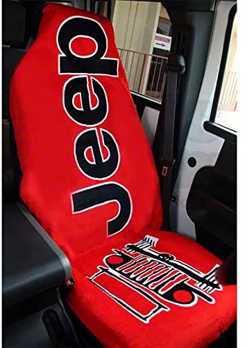 Premium Construction. This Towel 2 Go is made from high-quality cotton terry/velour fabric with a soft feel. This material serves as an effective barrier to help further protect the covered seat. It also comes in an appealingly striking red fabric that features a bold Jeep logo for a stylish and aggressive look. In addition, it is furnished with durable grommets and a carabiner clip for a secure attachment to your seat.