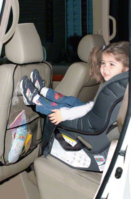 Everyone loves the pitter-patter of little feet. However, when that pitter-patter turns into dirty shoes slamming on the back of your Jeep's seat, it may be time for an intervention. Thank goodness for Jeep's Seat Back Protector. It easily attaches to the back of any car's seat with strong nylon straps and plastic side-release buckles. Keeping your child's travel items organized and readily accessible is easy with the spacious pocket. Each package contains two seat back protectors, so you're safe from little shoe prints and scuff marks no matter which side your baby-Beckham sits on.