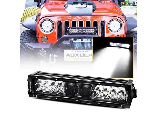 Construction and Features. Featuring a durable matte black die-cast aluminum housing and a clear transparent lens, this light bar is designed to withstand harsh conditions. The IP68 waterproof rating ensures reliable all-weather performance, while the use of high-intensity Osram P8+KW3 LED chips and an extra-large central projector enhances light output by 300% to 400% compared to ordinary light bars.