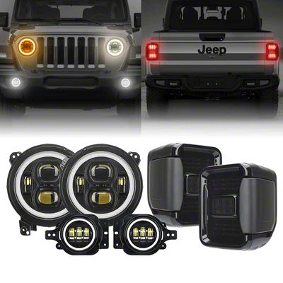 Application. This 9-Inch LED Halo Headlight, LED Fog Light, and LED Tail Light Package fits all 2020-2026 Jeep Gladiator JTs with Factory Halogen Tail Lights.