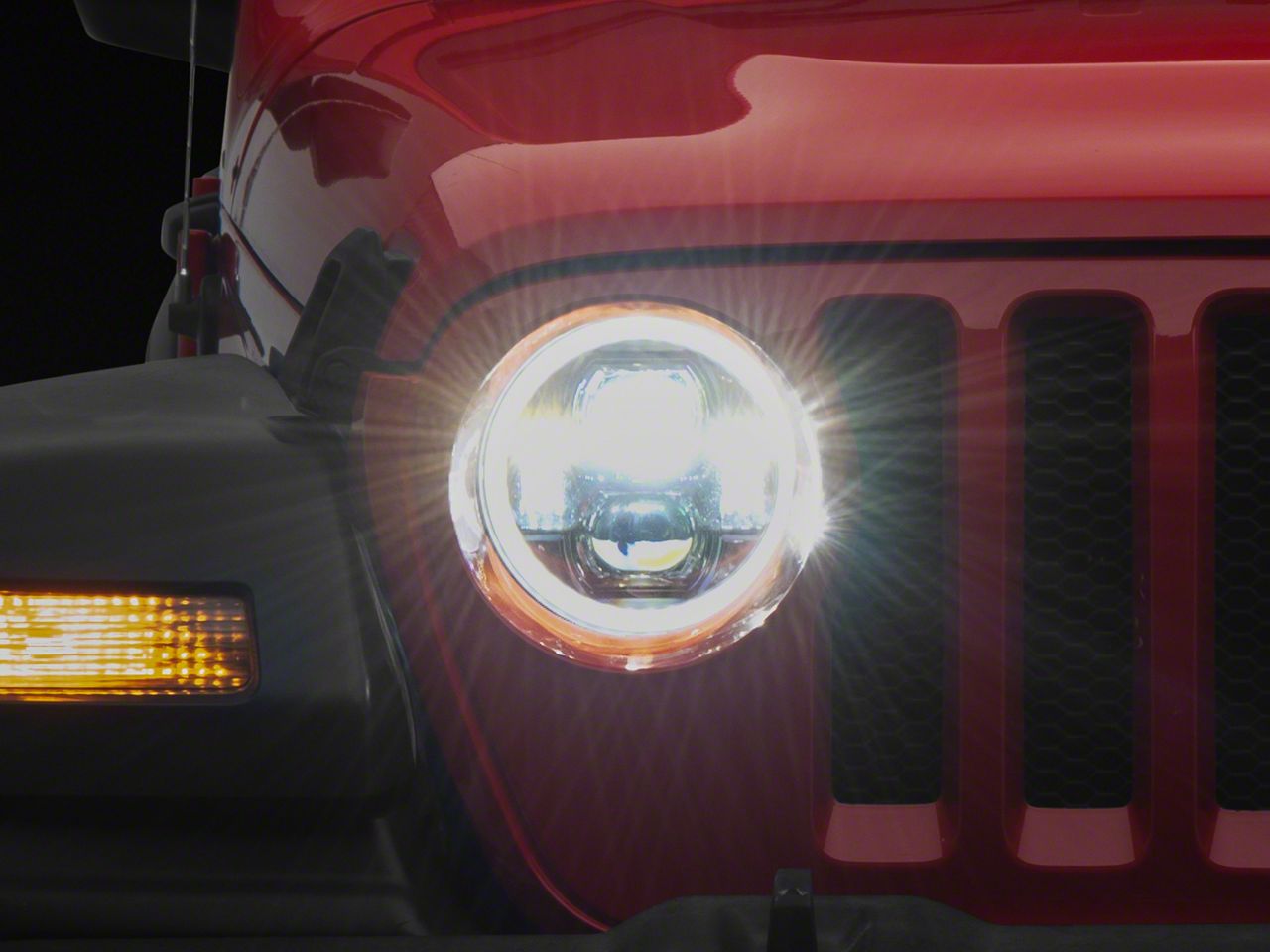 Application. The 9-Inch LED Halo Headlights with DRL, Amber Turn Signals and LED Halo Fog Lights; Black Housing; Clear Lens fits 2020-2026 Jeep Gladiator JT models.