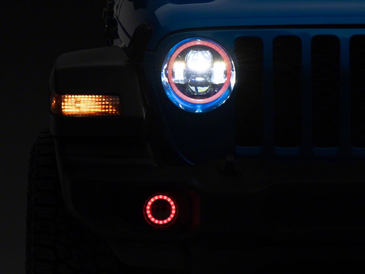 Installation. Putting these 9-Inch LED RGBW Halo Headlights with RGBW Fog Lights on your Jeep Gladiator JT is easy and requires no drilling.