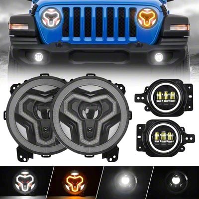 Application. This 9-Inch Warrior Series LED Halo Headlights with Halo Fog Lights in Black Housing and Clear Lens fits all 2020-2025 Jeep Gladiator JT models.